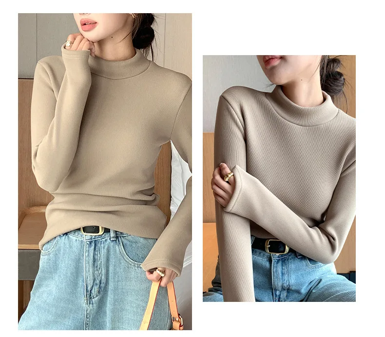Its solid color design, half-high collar, and slim silhouette make it perfect for layering or wearing on its own for casual outings, office wear, or cozy home days. Lightweight yet warm, this top combines style, comfort, and practicality for everyday wear.